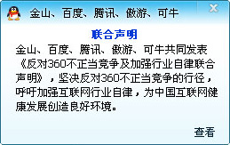 受害的還是用戶,接下來,360則乘勝追擊,推出了“扣扣保鏢”工具,防止QQ掃描本地文件,攔截QQ彈窗廣告,過濾QQ聊天窗口的廣告,禁用QQ相關軟件插件等功能。但“扣扣保鏢”這東西我也沒裝,,QQ雖難有彈出廣告,聊天廣告,但并不影響我聊天。