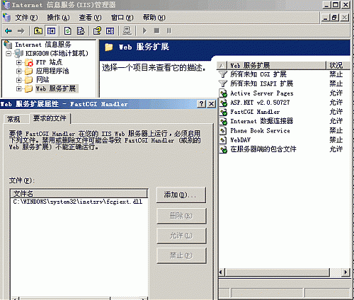 安裝FASTCGI時(shí),需要.net2.0以上、windows 2003 sp2 或以上