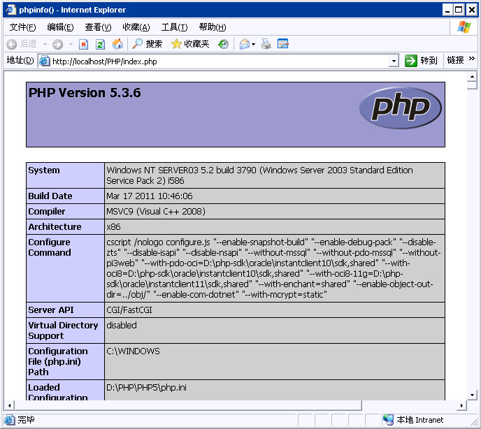 2.解壓php-5.3.6-nts-Win32-VC9-x86.zip文件到D:/PHP/PHP5