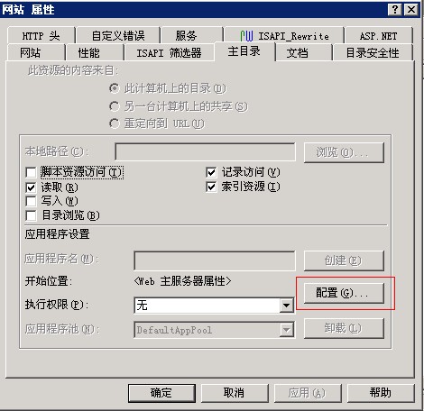打開(kāi)IIS 6管理器,在"網(wǎng)站"上點(diǎn)右鍵-->屬性-->主目錄-->配置-->添加,,操作方式就不詳寫了,繼續(xù)上圖