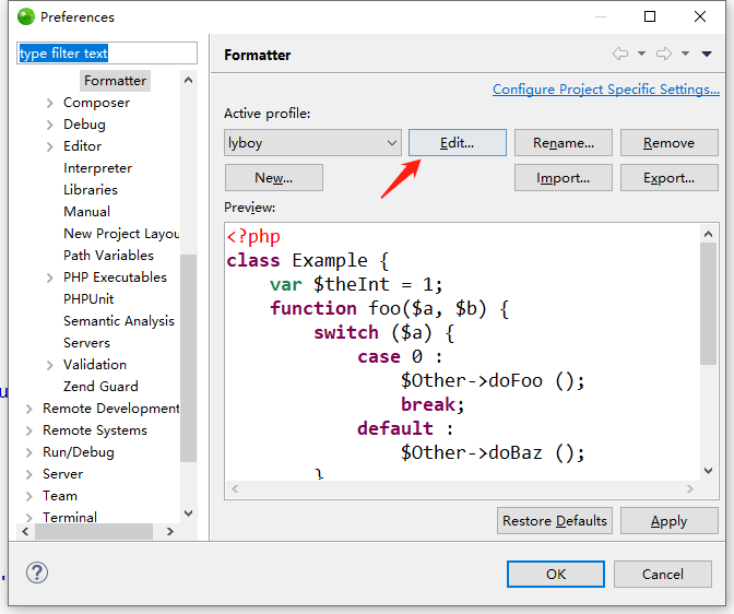 首先進(jìn)入window-->Preferences-->PHP-->Code Style-->Formatter創(chuàng)建或修改不需要格式化注釋的模板